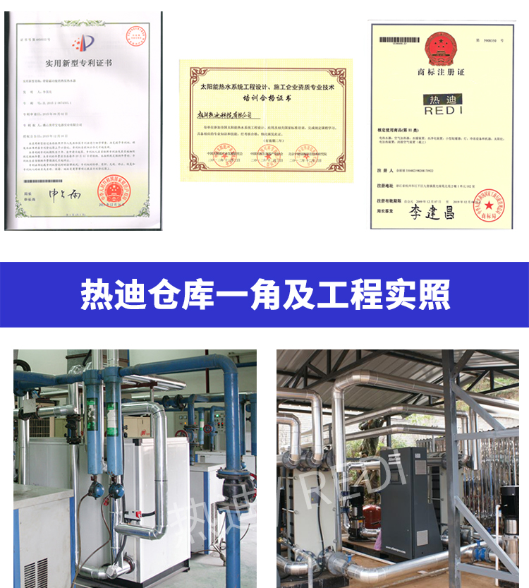 3、常溫自來水進入熱回收系統(tǒng),直接源源不斷斷供應(yīng)75℃熱水,無需水箱循環(huán)加熱